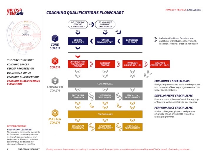 The new system allows candidates to take development pathways to suit them. For example, after the initial core training of level 1 and 2 candidates can chose to advance down a performance focused route by taking their individual weapon levels, or perhaps focus on grassroots skills and community coaching modules. The system offers an engaging holistic approach, encompassing the skills required to coach in different situations and to different purposes, rather than focusing exclusively on technical skills.